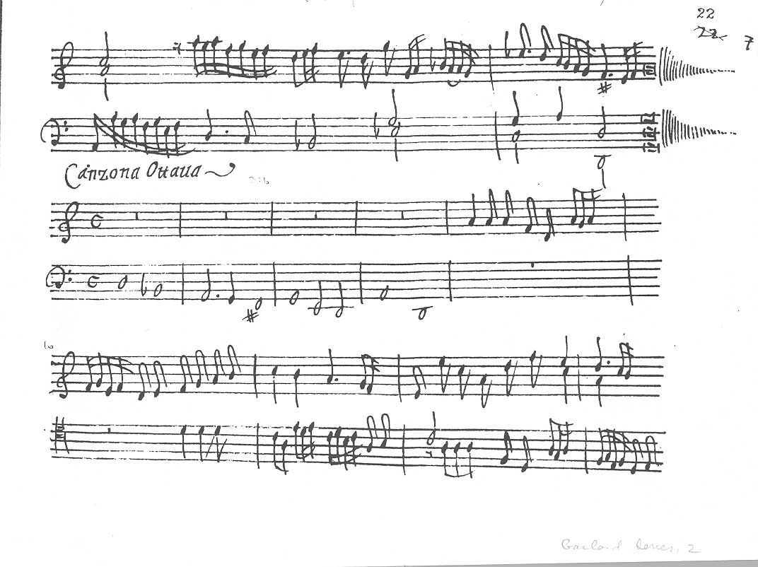 Frescobaldi (?), end of Canzona Settima and beginning of Canzona Ottava; London, British Library, Add. Ms. 40080, fol. 22, reprinted from facsimile edition (see note 31) by permission of Garland Publishing, Inc.