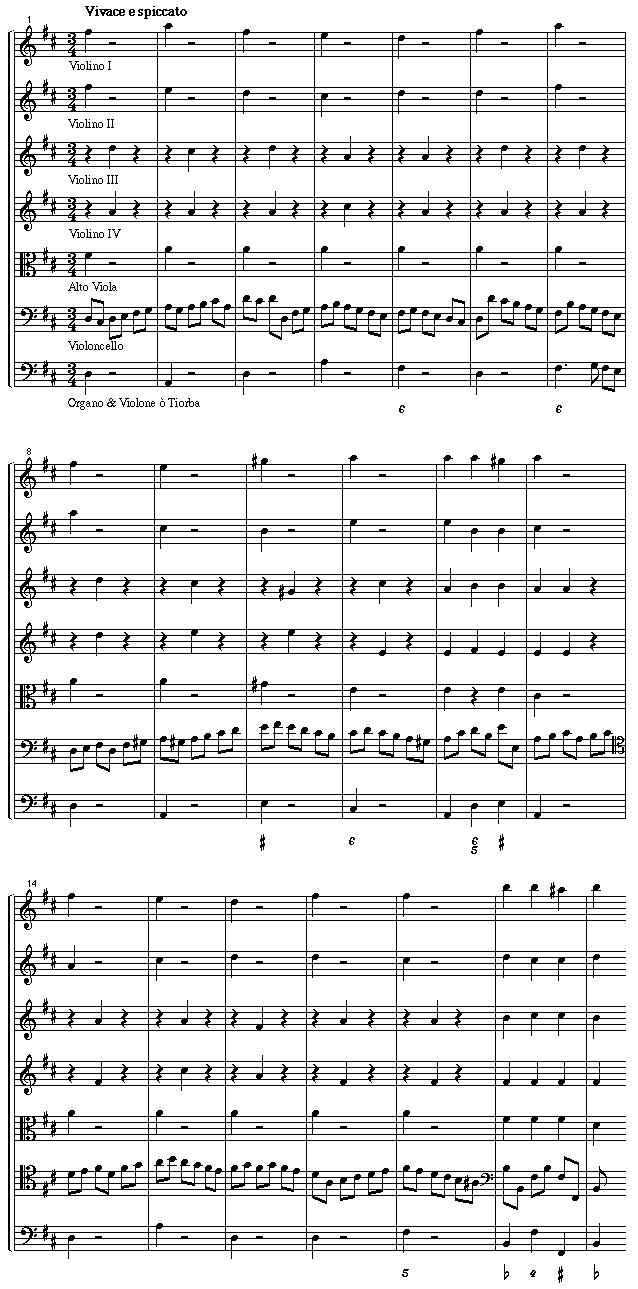 Example 1: Giovanni Bononcini, Op. 3 (Bologna: Monti, 1685), Sinfonia Terza